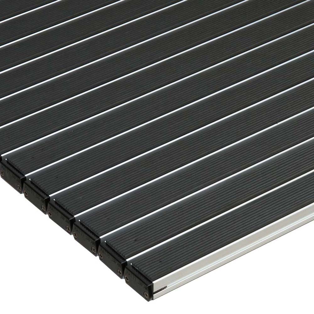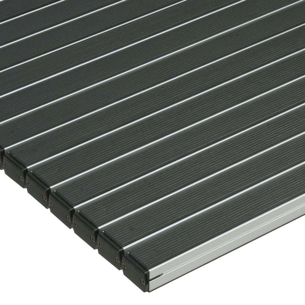 - 屋内用のラバーマットを巻き取り可能なアルミフレームにはめ込んだ玄関マットです。
