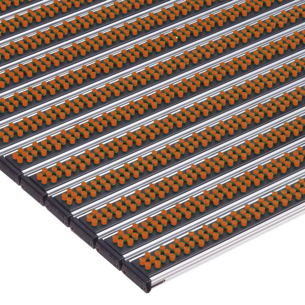 - 屋内用のブラシを巻き取り可能なアルミフレームにはめ込んだ玄関マットです。