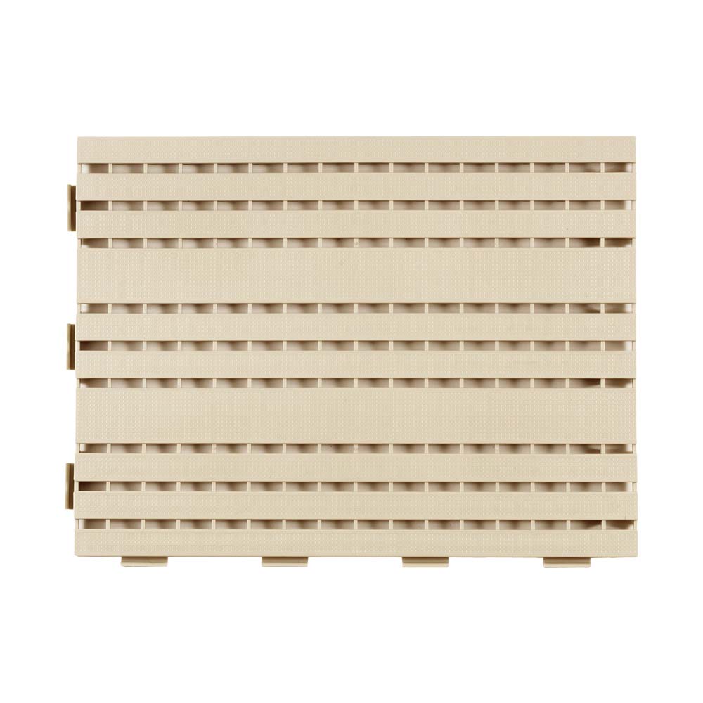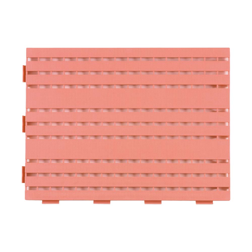 - 床に馴染みやすく、水切れがよく、施工性に優れた再生樹脂を使用したジョイントスノコです。