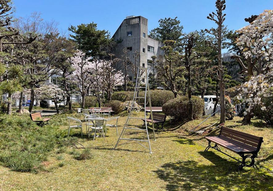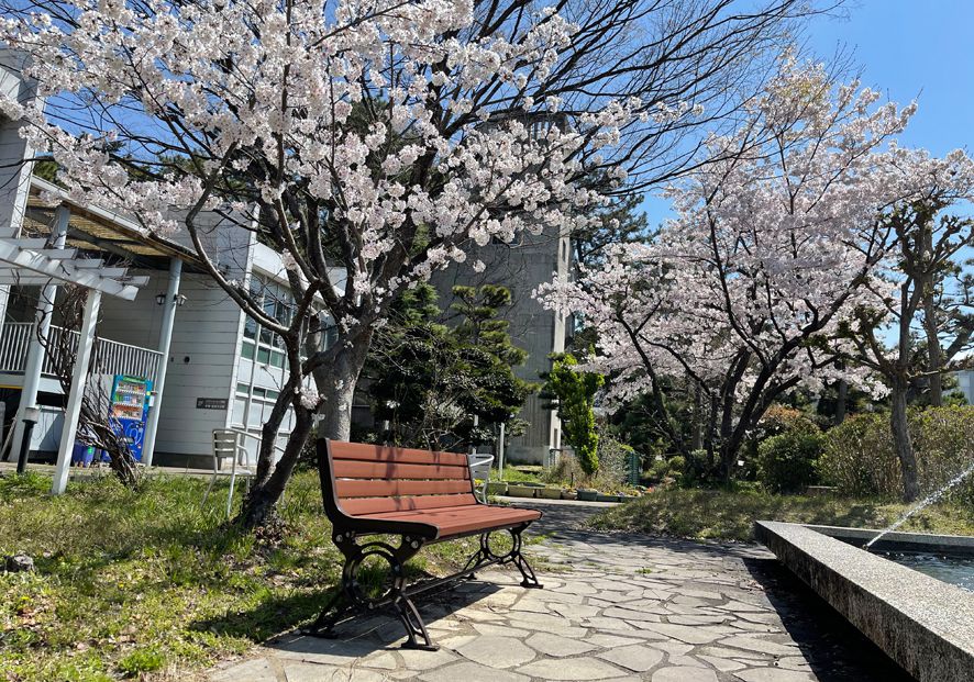 桜並木が咲き誇る公園に設置されたベンチは、花見客にとって憩いの場となり春の訪れをより一層鮮やかに彩ります。